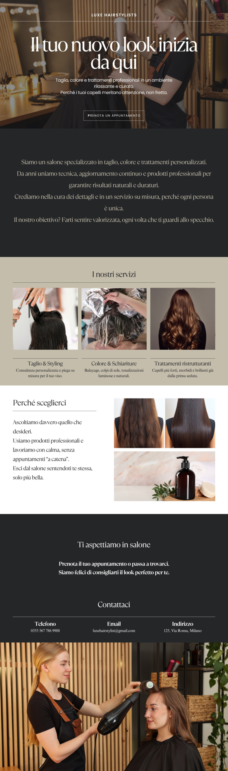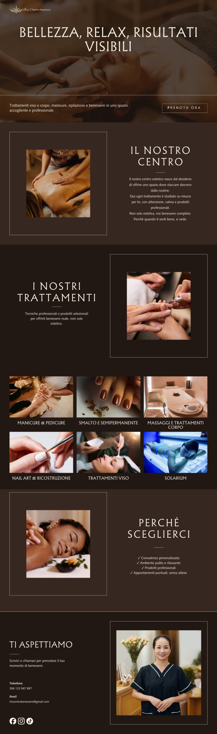 - 1 pagina unica con tutto (attività, servizi, contatti)