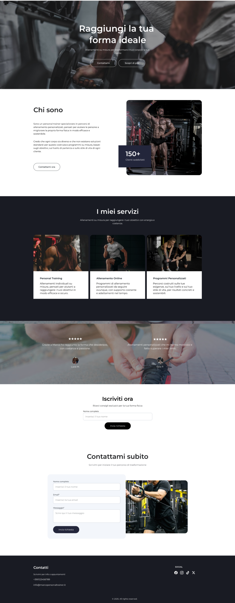 - Sito diviso in più pagine (Home, Servizi, Contatti)